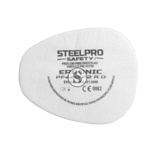 Descripción: El prefiltro ERGONIC PF420 P2 R D está diseñado para dispositivos de filtros múltiples y protege contra partículas. P2 corresponde a protección contra aerosoles sólidos y/o líquidos ligeramente tóxicos o irritantes. Es compatible con los filtros y respiradores ERGONIC de medio rostro 100 y 200S, y de rostro completo 1000S. Certificacion EN14387:2004+A1:2008 - EU 2016/425 - CE 0082.