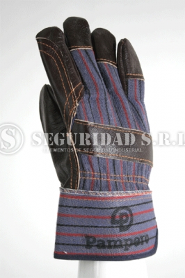 - guante combinado de vaqueta de tapicería con lona, con refuerzo en la palma y en los dedos índice y pulgar, que le ottorgan mayor resistencia al desgaste y a la abrasión