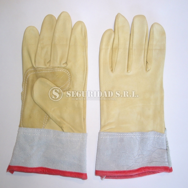 - Confeccionado con cuero de vaqueta de 1º calidad. A diferencia de los guantes que hay en nuestro mercado, estos son guantes amplios. Protege la mano o una parte de ella contra riesgos mecánicos. Usos Posibles: Industria Petrolera, Perforadoras, y Mecánicas en Gral. Donde sea necesario proteger la palma de la mano del desgaste mecánico intenso. Todas las piezas construidas en cuero vaqueta . Puño de Cuero descarne color gris, en una sola pieza